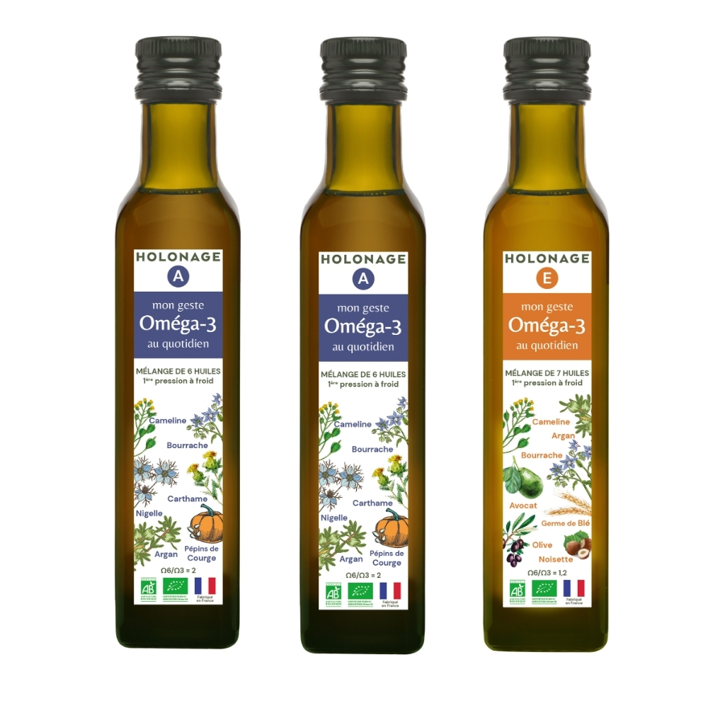 HOLONAGE A : outre le fait d'apporter la bonne quantité en oméga-3 végétaux, ce mélange est dédié à l'intestin; il vient prendre soin de la muqueuse intestinale. Le saviez-vous ? l'équilibre de notre microbiote est corrélé à nos apports en oméga-3 (voir notre blog actu santé sur le sujet).